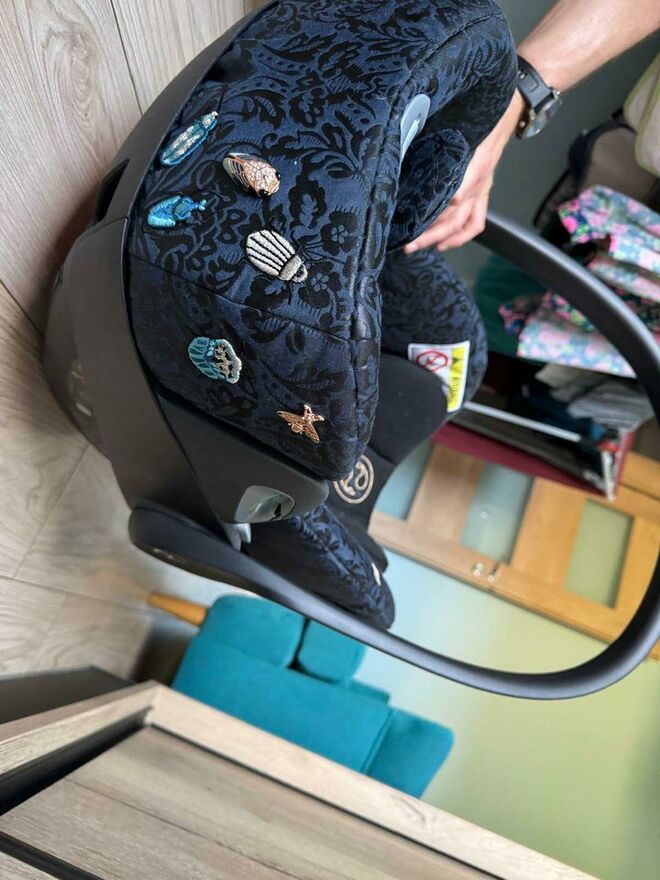 Fotelik samochodowy CLOUD T i-Size Jewels of Nature w kolorze czarno-granatowym.. Lekkie ślady użytkowania widoczne na zdjęciach. Idealny wybór dla rodziców dbających o bezpieczeństwo dziecka podczas podróży. Osoby zainteresowane zapraszam do kontaktu.Mateusz